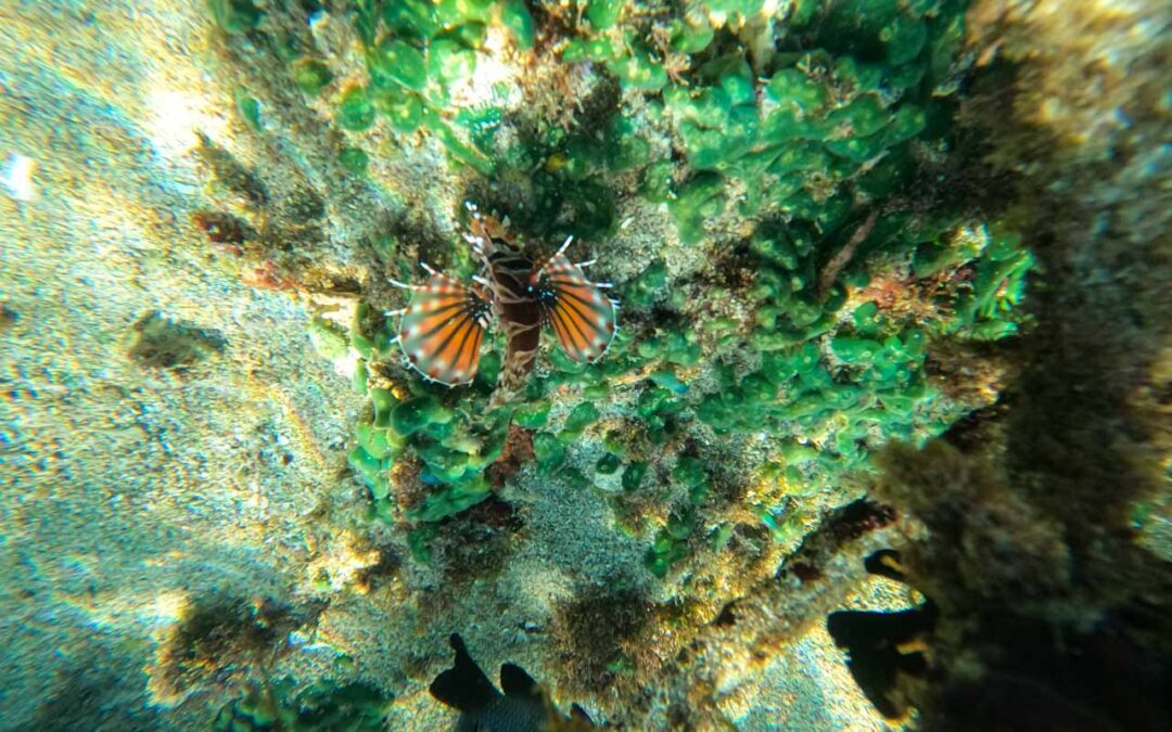 Seeing a lionfish up close is always captivating. Its vibrant stripes of white, maroon, and orange stood out brilliantly against the coral backdrop. The long, delicate fins drifted like ribbons in the water, giving it a regal and almost hypnotic presence. From our perspective as caretakers of the reef, it felt as though the lionfish was both a visitor and a silent reminder of the ocean’s complexity.